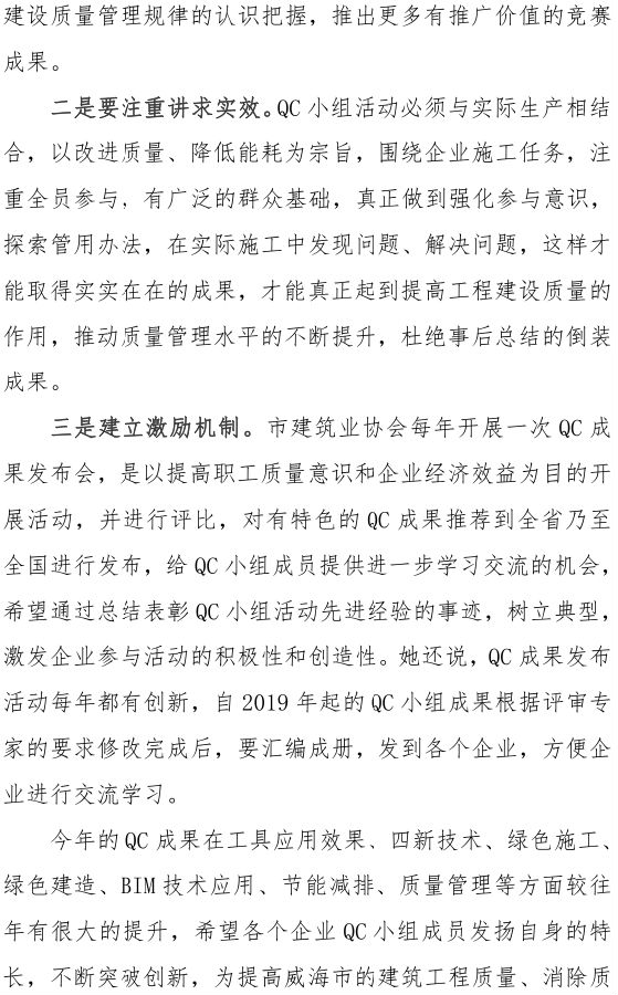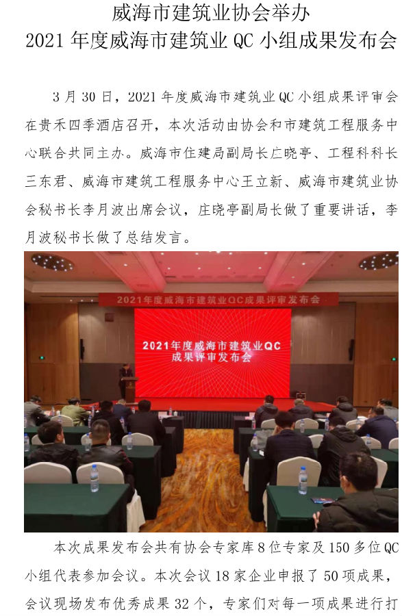 威海市建筑業(yè)協(xié)會(huì)舉辦 2021年度威海市建筑業(yè)QC小組成果發(fā)布會(huì)