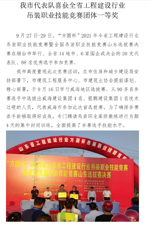 >我市代表隊喜獲全省工程建設行業(yè) 吊裝職業(yè)技能競賽團體一等獎