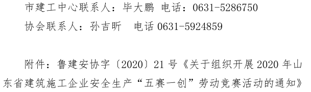 關(guān)于轉(zhuǎn)發(fā)省建筑安全與設(shè)備管理協(xié)會 省建設(shè)工會《關(guān)于組織開展2020年山東省 建筑施工企業(yè)安全生產(chǎn)“五賽一創(chuàng)” 勞動競賽活動的通知》