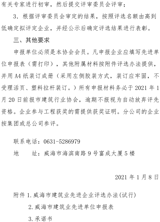 >威海市建筑業(yè)協(xié)會關(guān)于 評選2020年度建筑業(yè)先進(jìn)單位的通知