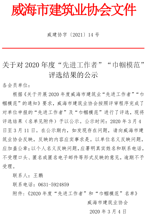>關(guān)于對(duì)2020年度“先進(jìn)工作者”“巾幗模范”評(píng)選結(jié)果的公示