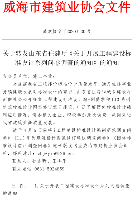 >關(guān)于轉(zhuǎn)發(fā)山東省住建廳《關(guān)于開展工程建設(shè)標(biāo)準(zhǔn)設(shè)計系列問卷調(diào)查的通知》的通知
