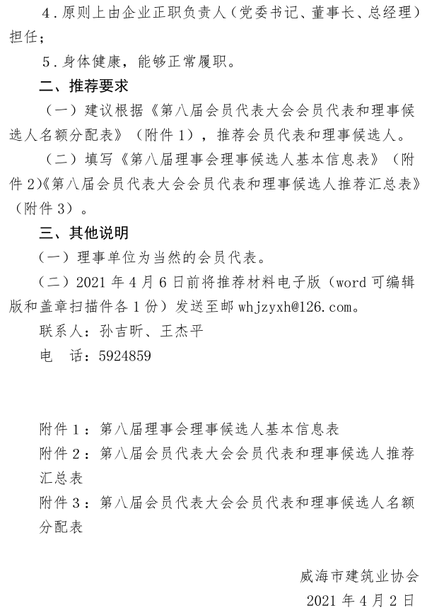關于推薦第八屆會員代表大會 會員代表和理事候選人的通知
