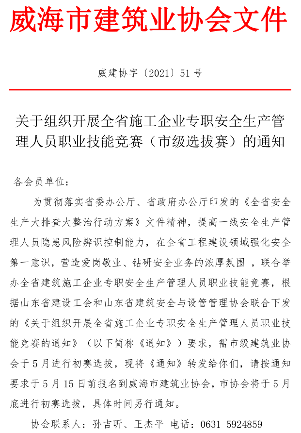 關(guān)于轉(zhuǎn)發(fā)省安全與設(shè)備管理協(xié)會(huì)、省建設(shè)工會(huì)《關(guān)于組織開展2021年山東省建筑施工企安全生產(chǎn)“五賽一創(chuàng)”勞動(dòng)活動(dòng)的通知》的通知