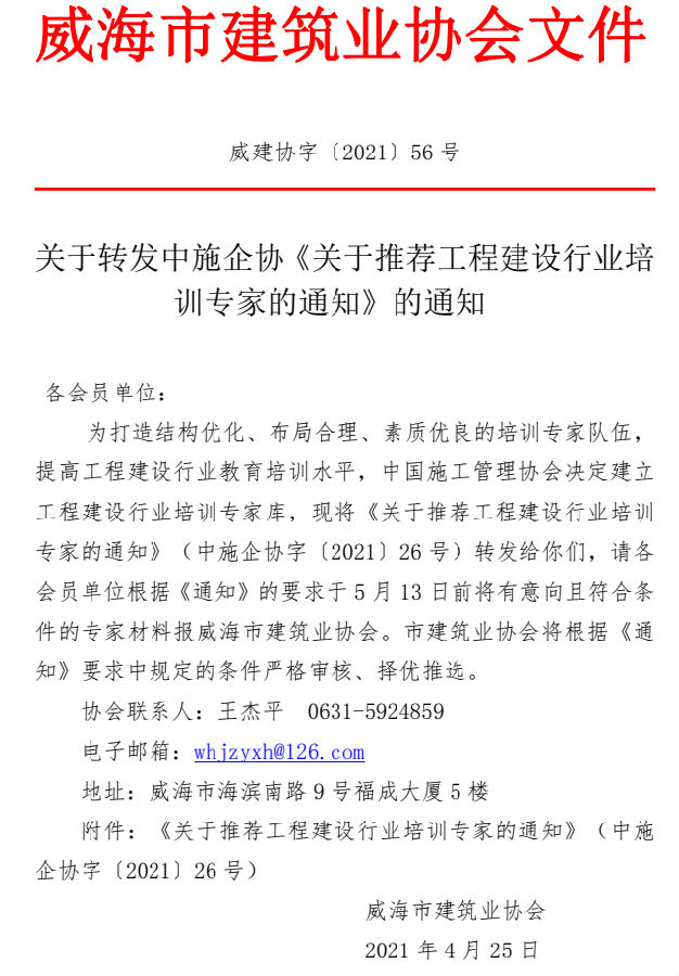 關(guān)于轉(zhuǎn)發(fā)中施企協(xié)《關(guān)于推薦工程建設(shè)行業(yè)培訓(xùn)專家的通知》的通知?