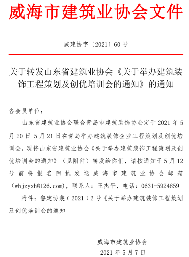 關(guān)于轉(zhuǎn)發(fā)山東省建筑業(yè)協(xié)會《關(guān)于舉辦建筑裝飾工程策劃及創(chuàng)優(yōu)培訓(xùn)會的通知》的通知