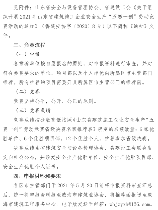 >關于組織開展2021年山東省建筑施工企業(yè) 安全生產(chǎn)“五賽一創(chuàng)”勞動競賽活動 (市級選拔賽)的通知