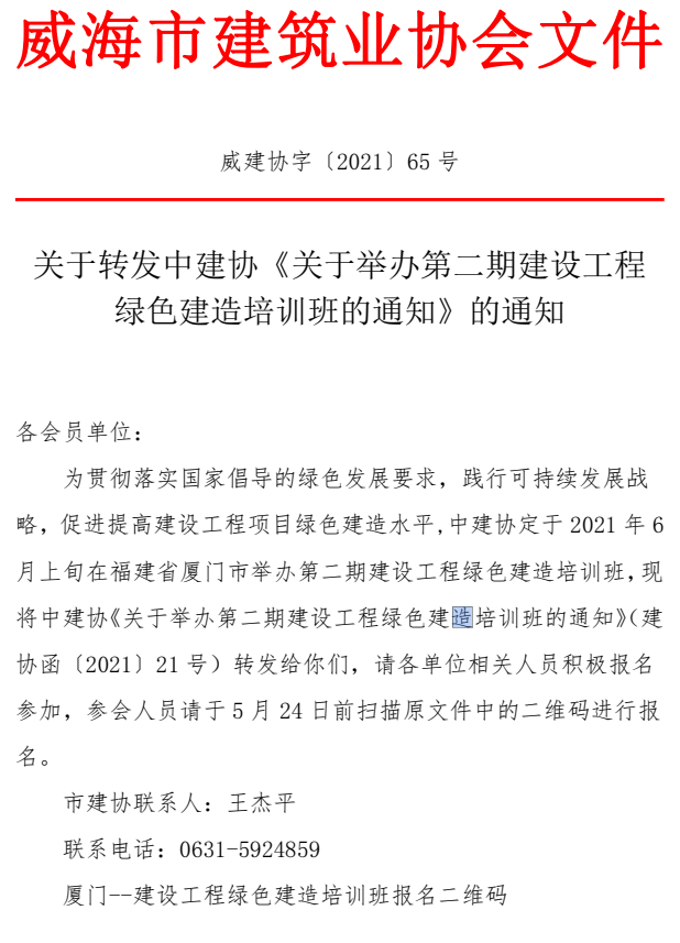 關于轉發(fā)中建協(xié)《關于舉辦第二期建設工程 綠色建造培訓班的通知》的通知