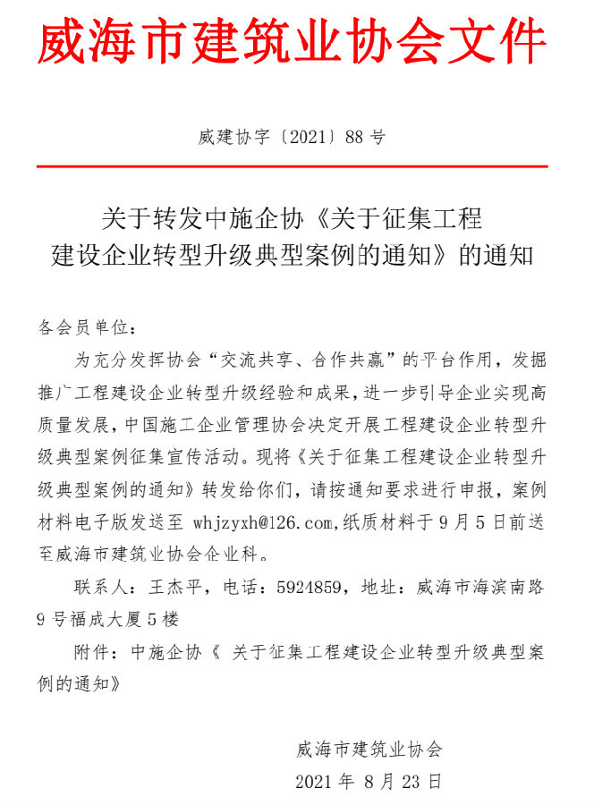 關于轉發(fā)中施企協《關于征集工程 建設企業(yè)轉型升級典型案例的通知》的通知