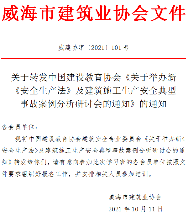 關(guān)于轉(zhuǎn)發(fā)中國建設(shè)教育協(xié)會《關(guān)于舉辦新 《安全生產(chǎn)法》及建筑施工生產(chǎn)安全典型 事故案例分析研討會的通知》的通知