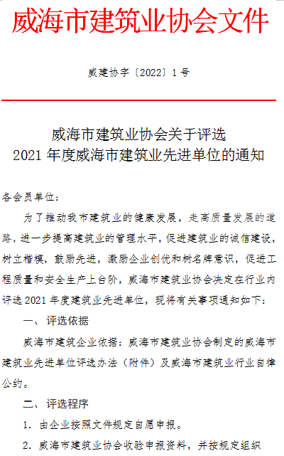 >關(guān)于評選2021年度建筑業(yè)先進(jìn)單位的通知