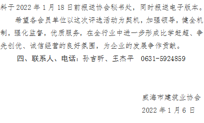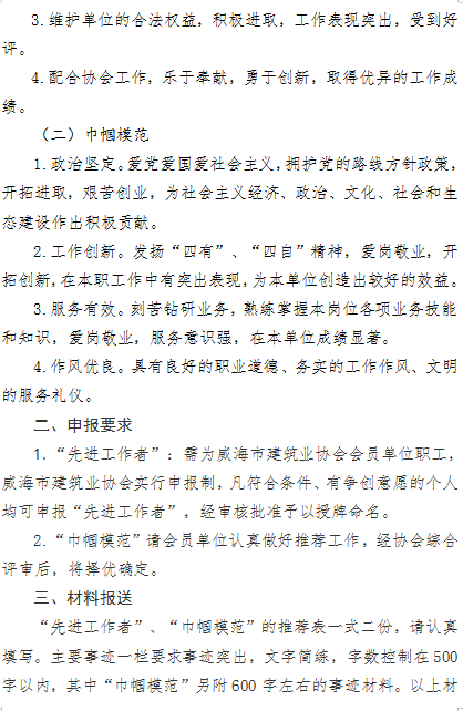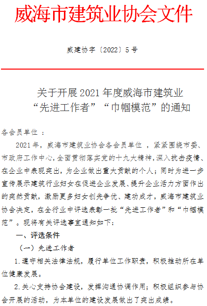 >關(guān)于開(kāi)展2021年度威海市建筑業(yè)“先進(jìn)工作者”“巾幗模范”的通知