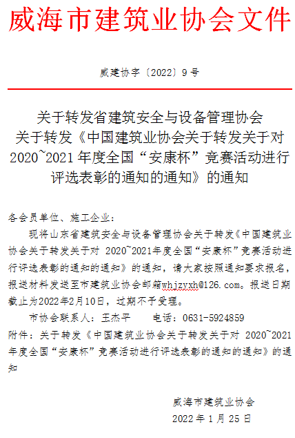 >關于轉發(fā)《中國建筑業(yè)協(xié)會關于轉發(fā)關于 對 2020~2021 年度全國“安康杯”競賽活動 進行評選表彰的通知的通知》的通知