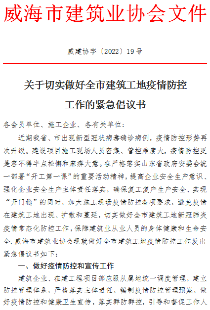 關(guān)于切實做好全市建筑工地疫情防控工作的緊急倡議書