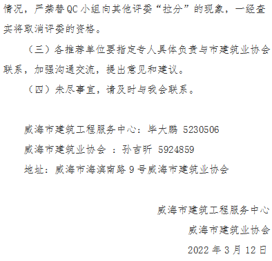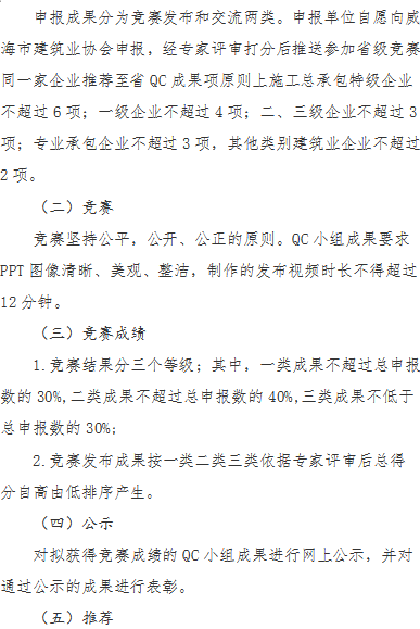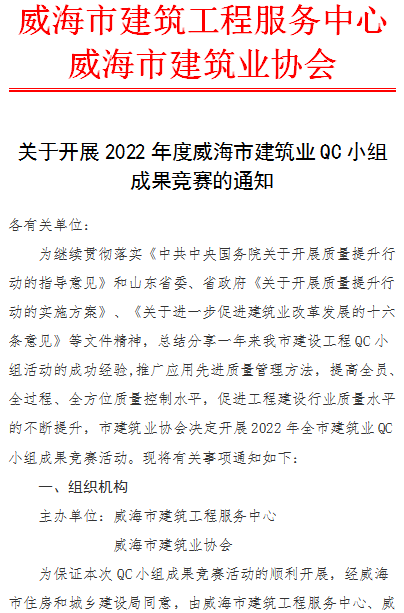 >關于開展2022年度威海市建筑業(yè)QC小組成果競賽的通知