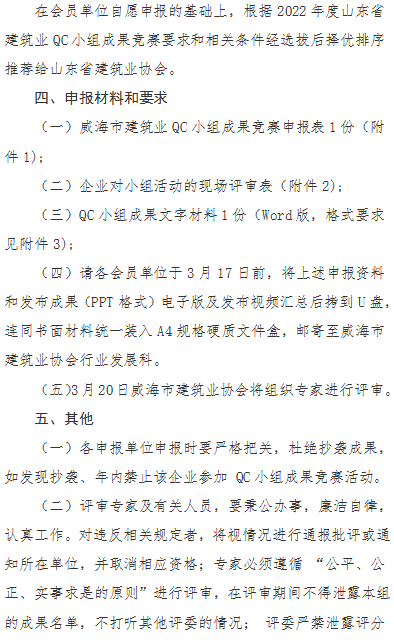 關于開展2022年度威海市建筑業(yè)QC小組成果競賽的通知