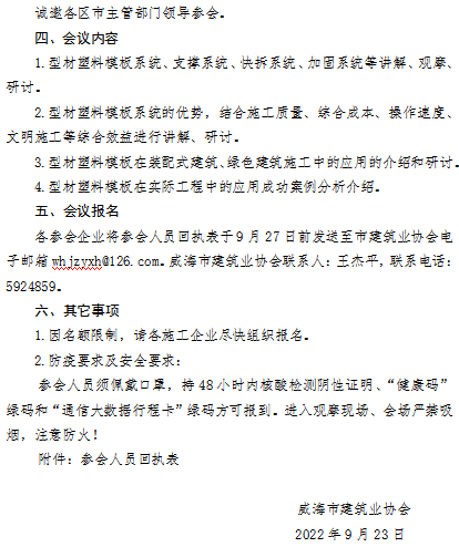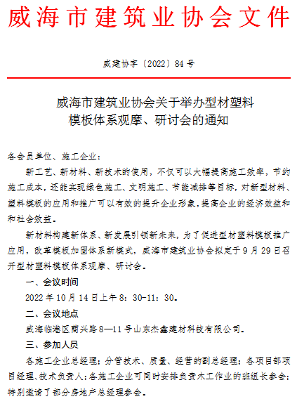 >威海市建筑業(yè)協(xié)會關(guān)于舉辦型材塑料模板體系觀摩、研討會的通知