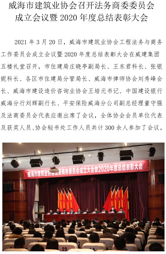 威海市建筑業(yè)協(xié)會召開法務(wù)商委委員會 成立會議暨2020年度總結(jié)表彰大會