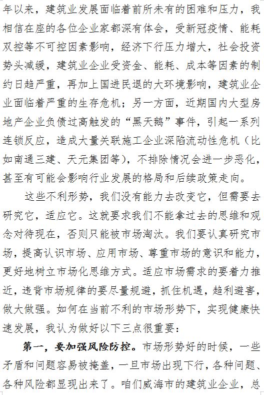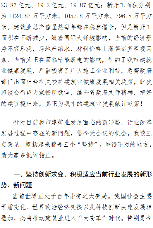 >建筑業(yè)協(xié)會(huì)企業(yè)家座談會(huì)王傳波會(huì)長(zhǎng)講話