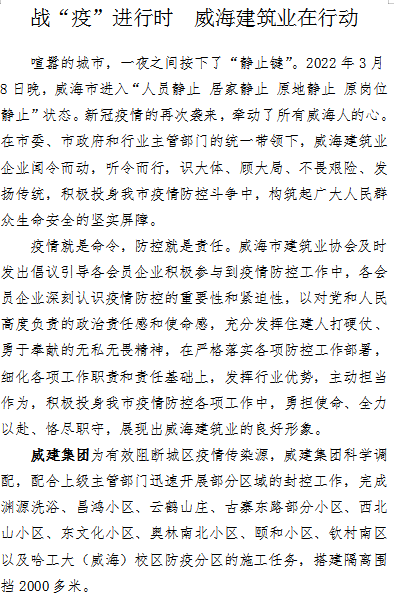 >戰(zhàn)“疫”進(jìn)行時(shí) 威海建筑業(yè)在行動(dòng)